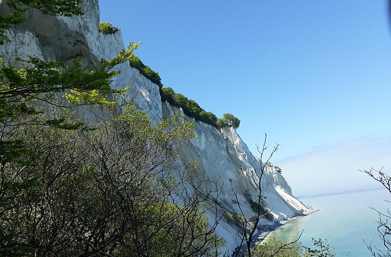 Nach der Mittagspause ging die Fahrt zum östlichen Ende der Insel, zum Möns Klint. Drei Wanderwege standen zur Wahl, der eine, auf Holztreppen, 486 Stufen nach unten zum Meer, belohnte die mutigen Teilnehmer mit einer herrlichen Aussicht zum Kreidefelsen. Weiter ging die Fahrt nach Norden zum Liselund-Park, eine romantische Gartenanlage mit Seen und exotischen Bäumen. Das alte Schloss Liselund und seine Nebengebäude waren sehenswert. Dann erfolgte die Rückfahrt zur Fähre, wo es ein skandinavisches Buffets gab.