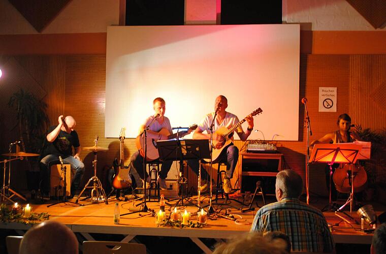 Die vier Bandmitglieder Willi Kirchner (Gitarre, Querflöte, Gesang), sein Sohn Philipp (Gitarre, Gesang), Lena Wolf (Cello, Gesang) und Frank Wehner (Cajon, Percussion), fanden die perfekte Mischung in der Auswahl ihrer Darbietungen, und man konnte förmlich merken, dass der Funke zwischen dem gut gemischten Publikum und den Künstlern sofort übersprang.