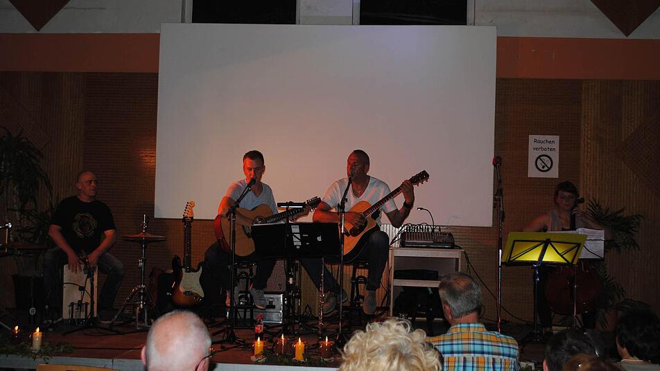 Rund 200 Besucher genossen einen Musikabend mit einem ganz besonderen Flair im und am Sportheim des TSV Wollbach. "foUr", eine Formation um Willi Kirchner, den man bereits als Mitglied und Sänger der Gruppe "KoanNome" kennt, gab ein breit gefächertes Repertoire zum Besten. Über vier Stunden präsentierte das Quartett einfühlsame Balladen und Irish Folk, aber auch Eigenkompositionen und Ohrwürmer aus der deutschsprachigen Musikszene.