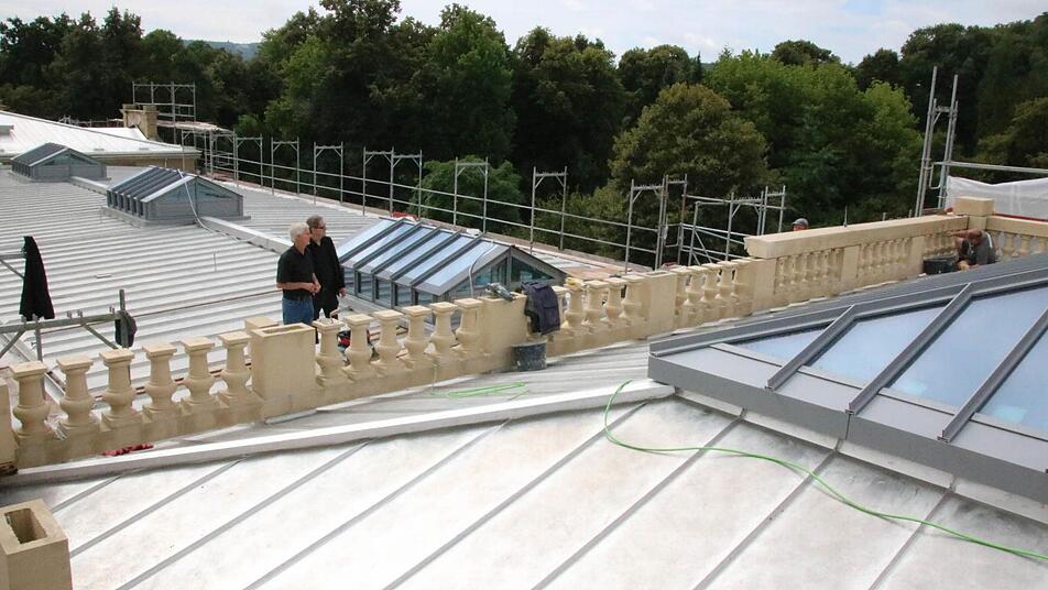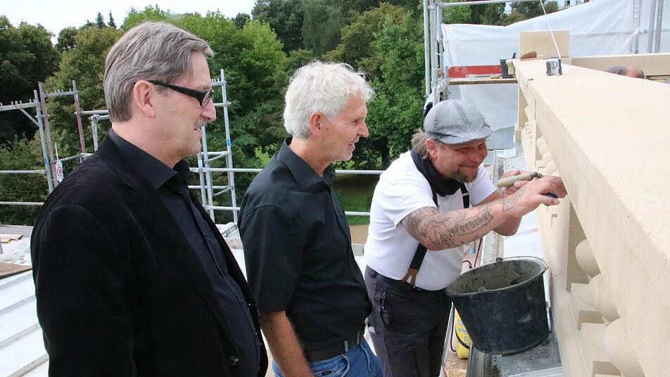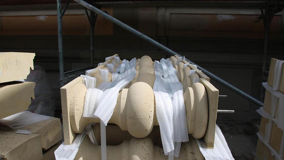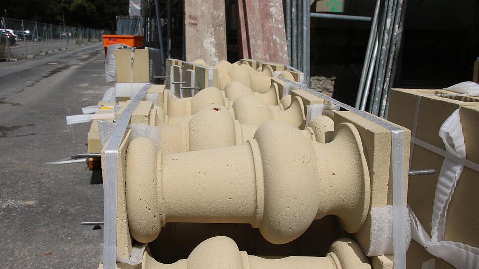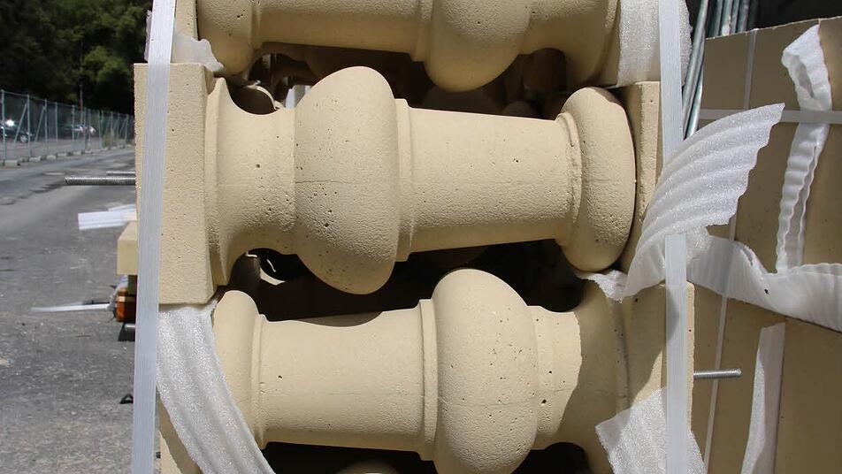 Trotzdem seien sie nie in Frage gestellt worden, schließlich habe sich das Staatliche Bauamt schon bei der Sicherungsmaßnahme 2001 dazu verpflichtet, die Baluster irgendwann wieder aufzubauen. "Man spürt jetzt schon, dass es ein ganz anderes Erscheinungsbild ist", sieht Full das als richtige Entscheidung an: Die Baluster wirkten wie eine Krone auf den Gebäudeteilen. Mitte Juli wurde mit dem aufwendigen Aufbau begonnen.