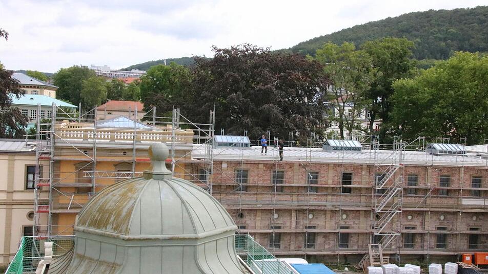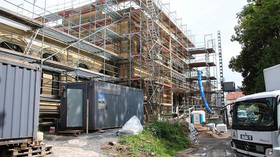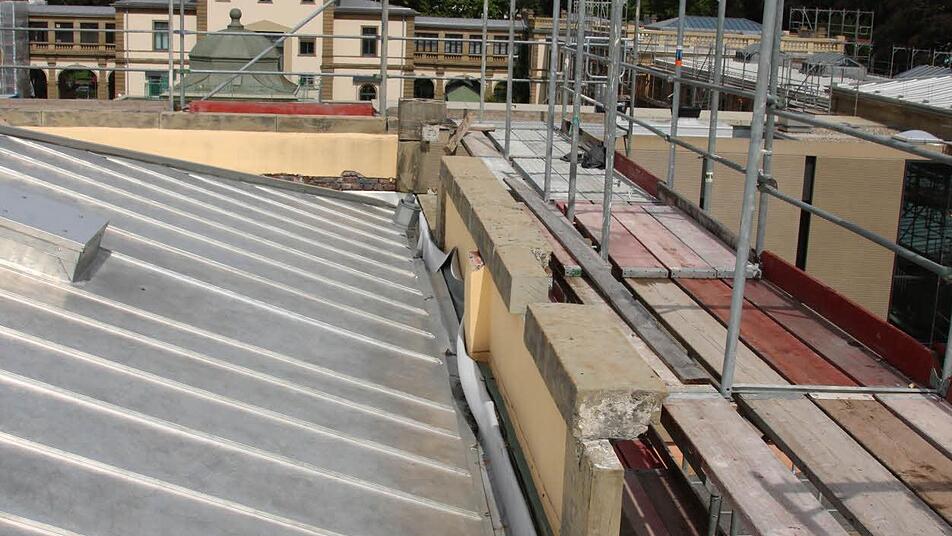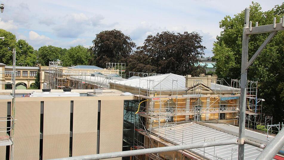 Erhalten blieben 2001 die so genannten Schildwände: kleine Giebel an den Kopfbauten. "Die wurden damals nur nach hinten gesichert", berichtet Full. Nun werden sie restauriert und ergänzen die Wirkung der Balustraden nach außen und zum Innenhof hin. Noch bis Ende September wird der Aufbau der Balustraden voraussichtlich dauern, veranschlagt sind dafür rund 600 000 Euro von 37 Millionen Euro Gesamtkosten. "Wir sind genau im Zeit- und Kostenrahmen, in einem Jahr können die Behörden einziehen", fasst Erwin Full den aktuellen Stand zusammen.