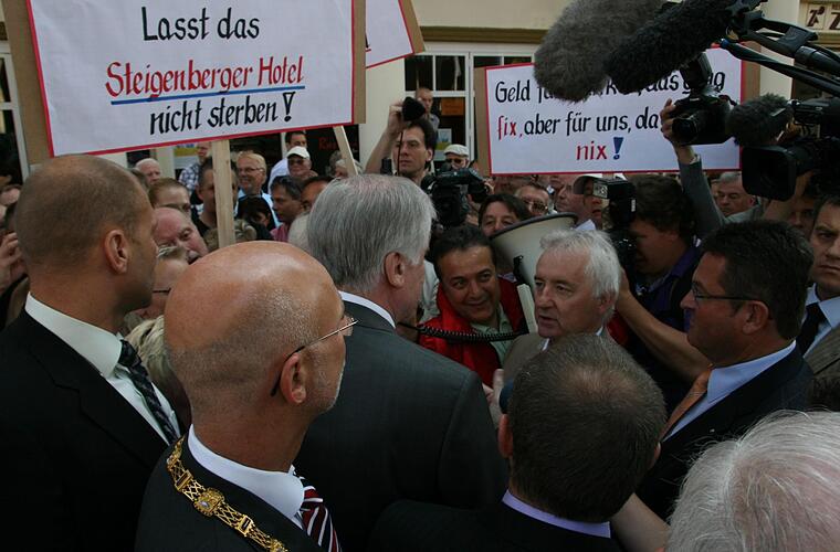 Verpachtung Nach einer umfassenden Renovierung nahm die "Steigenberger"-Kette im Mai 1959 den Hotel-Betrieb im Kurhaushotel auf. Im Jahr 2010 kündigte der Freistaat den Pachtvertrag mit Steigenberger. Neben einer Entschädigung für den Konzern zahlte der Freistaat den Sozialplan für die rund 70 Beschäftigten sowie den Abriss