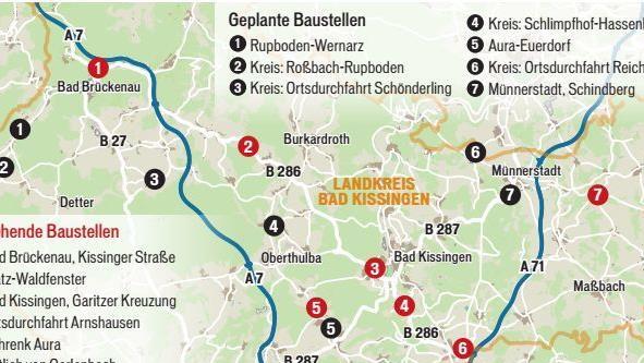 Eine der größten Baustellen im Landkreis ist aktuell die Erneuerung der Kissinger Straße in Bad Brückenau: "Wir wären gerne etwas weiter, aber die Abstimmungen sind sehr schwierig", sagt Köhler dazu. Vor allem würden immer wieder Versorgungsleitungen auftauchen, die eigentlich gar nicht im Baufeld liegen sollten. Falls es die Witterung erlaube, werde dort auch den Winter über durchgebaut. Darauf hofft auch die Bad Brückenauer Bürgermeisterin Brigitte Meyerdierks (CSU): "Wenn die Autobahn gesperrt ist, steht die Stadt still", berichtet sie von langen Staus auf der Umleitung. Die umliegenden Supermärkte hätten die Bauarbeiten zwar genutzt, um selbst zu bauen, trotzdem hofft die Bürgermeisterin auch im Sinne der Geschäfte auf ein möglichst frühes Bauende.