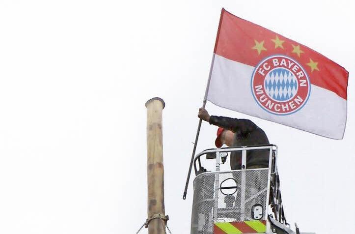 Unter den Augen weniger Passanten hissten die beiden mit grinsenden Gesichtern an der Spitze des Zunftbaums auf dem Brückenauer Marktplatz eine Bayernfahne."Bis zum Beginn der neuen Bundesligasaison sollte die schon da oben bleiben, gut fest gemacht habe ich sie jedenfalls", sagte Dirk Haydu zu seiner Aktion.