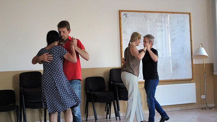 Zur Vertiefung des Erlernten beschloss das Ehepaar Beck aus Mitgenfeld vor einem Jahr, ein wöchentliches Tango-Treffen im Gemeindehaus in Oberleichtersbach anzubieten. "Hier üben wir und teilen unser Wissen, denn der Tanz ist auch Arbeit", bestätigt Christine Beck. Gerade für viele Frauen sei der Tanz zunächst ungewöhnlich oder gar gewöhnungsbedürftig, denn die Frau muss sich führen lassen und erspüren, was der Mann will. Das bestätigt auch Birgit Frech, die mit ihrem Partner regelmäßig am Tango-Treffen teilnimmt: "Wenn man es schafft, dann ist es ein ganz tolles Erlebnis, das eine direkte Begegnung mit dem Partner möglich macht". Das Loslassen vom Alltag und das Einlassen im Moment ist für ihren Partner Egon Hildmann zentrales Element. "Der Mann hat den schwierigen Part, denn er muss wissen, was er will. Er muss zielstrebig sein", sagt Alexander Beck über die Männerrolle beim Tango. Die Frau schmückt hingegen aus und folgt dem Mann.