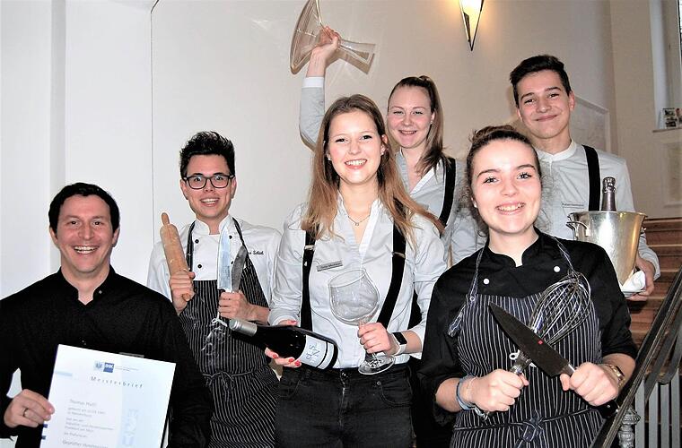 Hüttls Fachkenntnisse kommen nicht nur dem Hotel und Restaurant zugute, sondern wirken sich erfolgreich in der Ausbildung der fünf jungen Azubis aus, die vor wenigen Monaten ihr erstes Lehrjahr in Küche und Service begonnen haben.