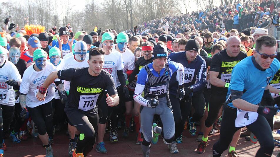 Sie sind wieder losgelassen - die Hartgesottenen, für die scheinbar kein Wasser zu kalt, kein Schlammloch zu tief und keine Hürde zu hoch ist. 2800 solcher harter Kerle und unerschrockener Frauen wollen in Münnerstadt zum Braveheart-Finisher werden.