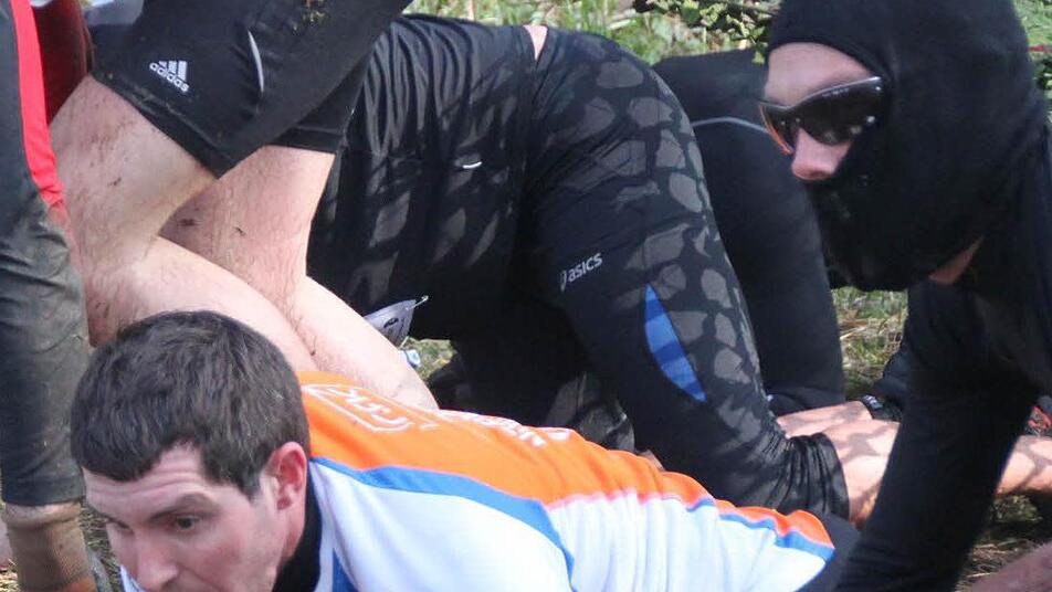 Manche Namen der Hindernisse wie "Killing Thrill" lassen schon erahnen, dass die Teilnehmer hier kein Zuckerschlecken erwartet. Andere klingen eher unverdächtig, sind dafür aber umso ekliger, wie Loch Ness, bei dem die Teilnehmer gezwungen sind, ins kalte Wasser des Reichenbacher Regenrückhaltebeckens auf Tauchstation zu gehen. Micha Kargerbauer aus Erlangen: "Da bleibt einem wirklich das Herz stehen". Das Wetter in diesem Jahr ist zwar ideal. Strahlende Sonne und milde Temperaturen dürfen aber nicht darüber hinwegtäuschen, dass das Wasser eiskalt ist. Und durch Bach und Regenrückhaltebecken müssen die Läufer häufig. Das fordert ihre ganze Kraft.