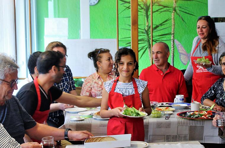 Beim integrativen Kochtreff im Ballinghain kochen, essen und feiern verschiedene Nationalitäten zusammen mit dem Helferkreis und Gästen.