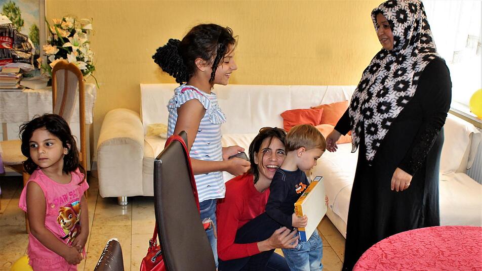 Dass diese Unterstützung von den Bewohnern gewürdigt wird, ist nicht zu übersehen. Strahlende Kinderaugen begrüßen die Helfer, und ohne einen dankbaren Blick oder eine Umarmung geht keiner aus der Unterkunft. Heute ist Catherine Vogel aus Kronberg gekommen. Die Darstellerin der Gräfin Beatrix bei den Botenlauben Festspielen und beim Rakoczyfest hat - wie könnte es anders sein - ein Herz besonders für die Asylbewerber aus Syrien. Schließlich wohnte das Grafenpaar ja nur einen Steinwurf oberhalb des ehemaligen Hotels auf der Burg, und der Minnesänger nannte seine Gattin im Lied "mein Gold aus Syrien". Als der Helferkreis von der Trennung einer Familie hörte, die wegen fehlender Papiere nicht zusammen ausreisen durften und fünf Kinder ohne Eltern unter den bekannten katastrophalen Verhältnissen in Libyen im Lager leben mussten, nutzte sie ihre beruflichen internationalen Kontakte , verhandelte mit den Botschaften und konnte erreichen, dass die fehlenden Dokumente beschafft werden konnten.