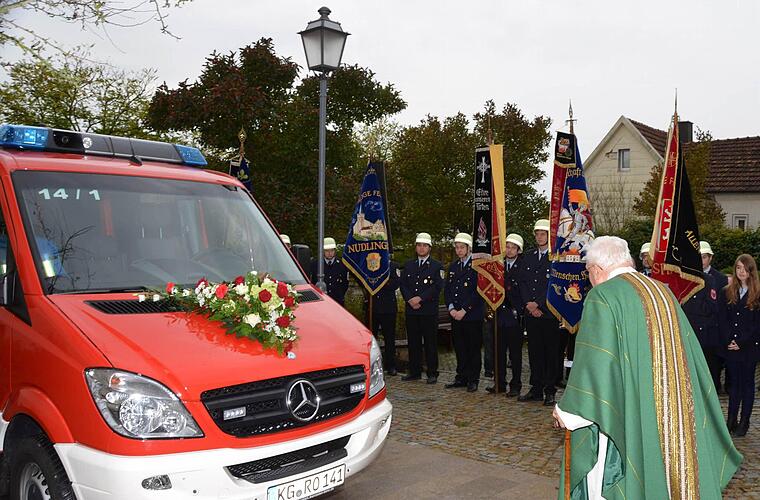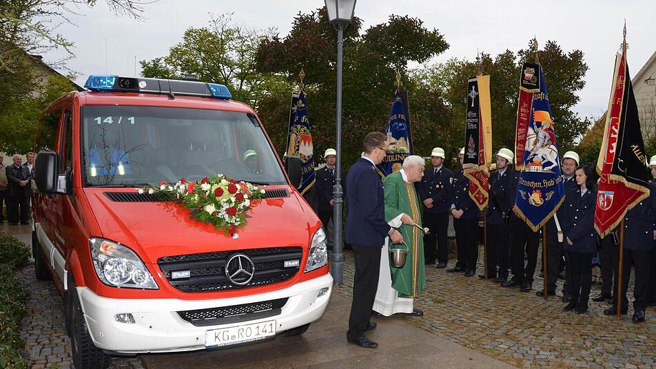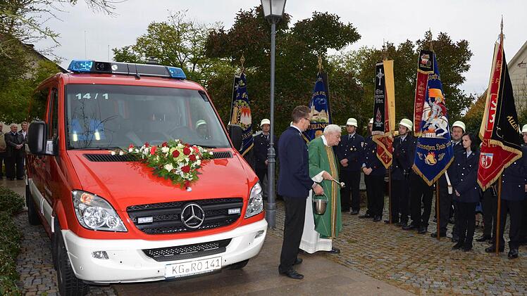 43 Jahre alt ist der bislang von der Freiwilligen Feuerwehr Rottershausen genutzte Ford Transit und damit schon seit Jahrzehnten ein richtiger Oldtimer. Nun wurde durch Pfarrer Karl Memmel ein neues Einsatzfahrzeug für die Ortswehr gesegnet.