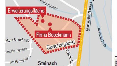 Während das Gewerbegebiet Mangelsfeld in Großenbrach boomt, herrschte in den vergangenen Jahren im zweiten Bad Bockleter Gewerbegebiet Stillstand: Vier Hektar hat die Gemeinde im Jahr 2000 am Eckartspfad nördlich von Steinach ausgewiesen. 2002 nahm die Firma Boockmann die Produktion in der neuen Halle auf. "Danach hat sich mehr als zehn Jahre dort nichts getan", berichtet Bürgermeister Wolfgang Back (CSU). Umso mehr freut er sich, dass nun zum einen ein Schlachthaus