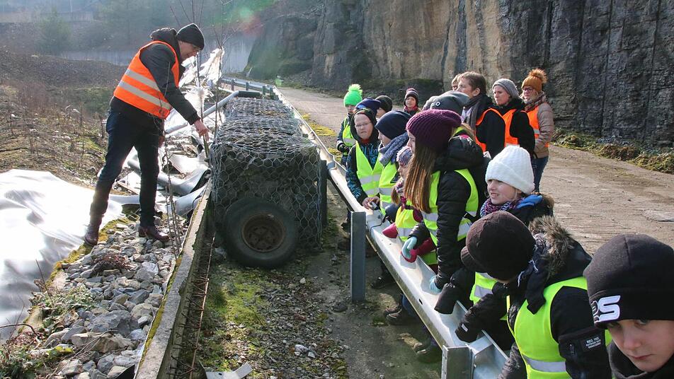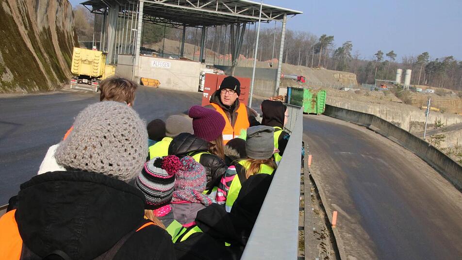 Die Kreis-Mülldeponie oberhalb von Wirmsthal ist der Hauptumschlagsplatz für den Müll des Landkreises: Alles außer dem Inhalt der Gelben Säcke wird dort ent- und verladen. "Über unsere Waagen gehen mehr als 200 000 Tonnen im Jahr", erzählt Andreas Sandwall den staunenden Schülern der Grundschule Oberleichtersbach.