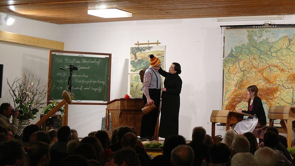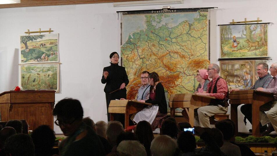 So war die historische Unterrichtsstunde, die Karola Helfrich alias "Schulfräulein Emilie" gab, auch Wiederholungsunterricht für das Publikum. Sie zeigte "einen gewöhnlichen Schultag, anno 1947 im Spätsommer", so Stefan Helfrich. Damals wurden alle Schüler in einem Raum unterrichtet, der Boden war aus rauen Brettern gefertigt, auf den harten Schulbänken waren Jungen und Mädchen getrennt. Heizmaterial wurde von zuhause mitgebracht, ebenso die Schiefertafel, ein Schulbuch und der vom Schuster gefertigte Schulranzen. Lehrer und Schulfräulein genossen "allerhöchste Autorität", auch an körperlichen Züchtigungen nahm niemand Anstoß. Die Besoldung der Lehrer war dürftig, üblich waren zusätzliche Einkünfte in Form von Naturalien. Die erste Schule wurde in Weißenbach 1850 gebaut, davor mussten die Kinder den beschwerlichen Schulweg nach Detter nehmen.
