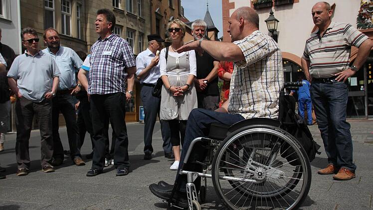 In Bad Kissingen steht heuer das Thema Barrierefreiheit auf dem Programm, sagt der Vorsitzende Bernhard Jaeckel. Bernhard Schlereth, Stadtrat und Bad Kissingens Behindertenbeauftragter, führte sie durch die Fußgängerzone. Seit einem Unfall vor 20 Jahren sitzt er im Rollstuhl. Er erklärte, wo die Stadt und die Geschäfte sich bereits Menschen mit Behinderung angepasst haben: Eingänge wurden abgeflacht und mit Rampen besser zugänglich