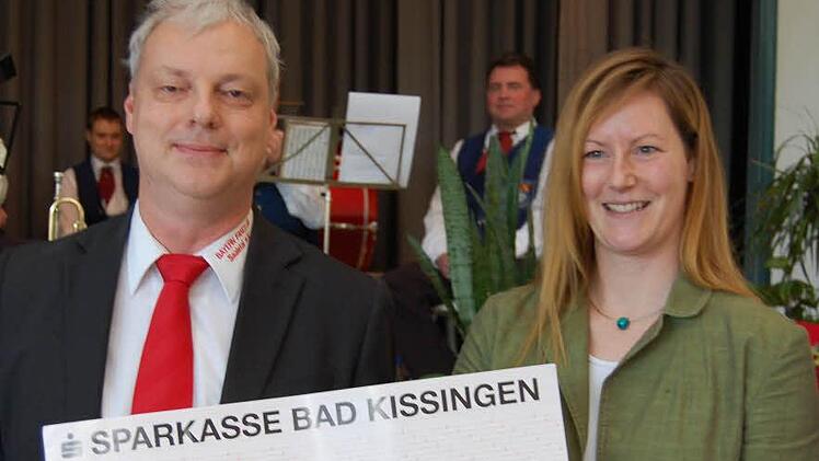 Storchennest erwünscht Eine freudige Überraschung gab es auch für Dörthe Jentsch, Vorsitzende des St.-Elisabeth-Vereins. Sie durfte von Wolfram Jürgens, dem Kassier des 900 Mitglieder starken FC-Bayern-Fanclubs Saaletal, eine Spende über 900 Euro für den Kneipp-Kindergarten in Bad Bocklet entgegennehmen.