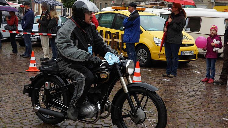 Seit 30 Jahren gibt es bereits die Bocksbeutel-Rallye in Hammelburg. Am Samstagmorgen sind die Teilnehmer auf die Strecke gegangen - zum zweiten Mal in der Rallye-Geschichte überhaupt bei Regen.
