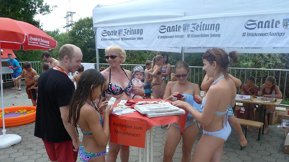 Spaß und Spiel rund ums Wasser war am Samstag im Bad Kissinger Terrassenschwimmbad geboten. Die Saale-Zeitung bot zusammen mit örtlichen Vereinen ein ganztägiges Programm vom Arschbomben-Contest bis hin zum Schnuppertauchen und Marathonschwimmen.