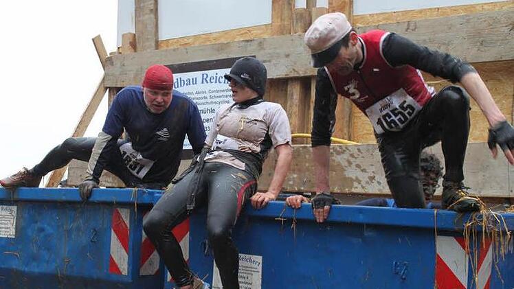 "Wir machen das ja freiwillig". "Es hat total Spaß gemacht", ist Silvia Hüttners Fazit. Die Burgebracherin ist die erste Frau, die ins Ziel kommt und wirkt völlig fit.