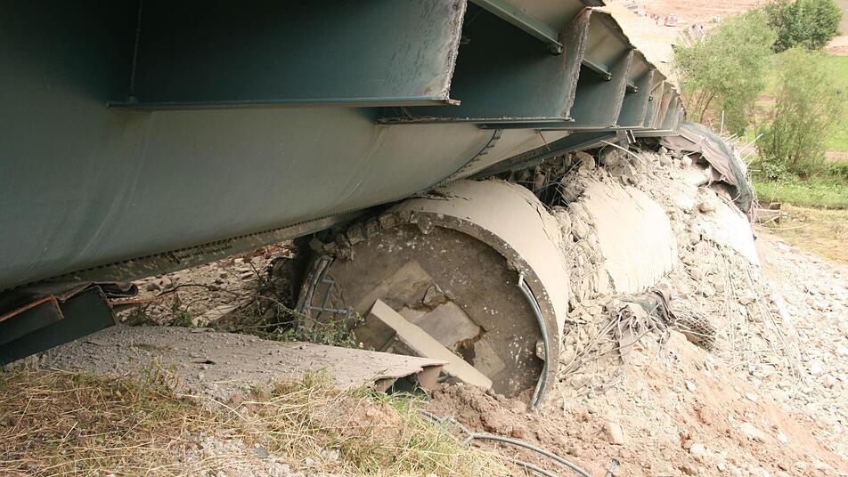 Viele der Arbeiter, die vor 48 Jahren die Brücke unmittelbar im Westen der Gemeinde bauten, haben damals während der Bauphase in Riedenberg gewohnt, auf Zeit gelebt. Dabei wurde natürlich auch mit der Ortsbevölkerung viel über die damals neue Brücke gesprochen. Entsprechend eng war man mit ihr verbunden. Und jetzt sollte sie also gesprengt werden.