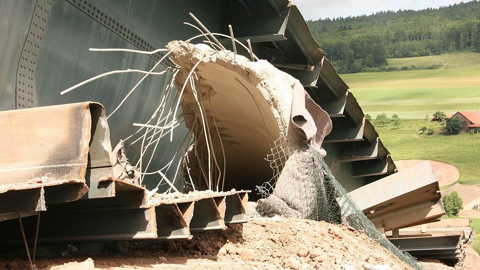 das Ereignis. Das größe in Deutschland jemals gesprengte Bauwerk, das war die Sinntalbrücke.