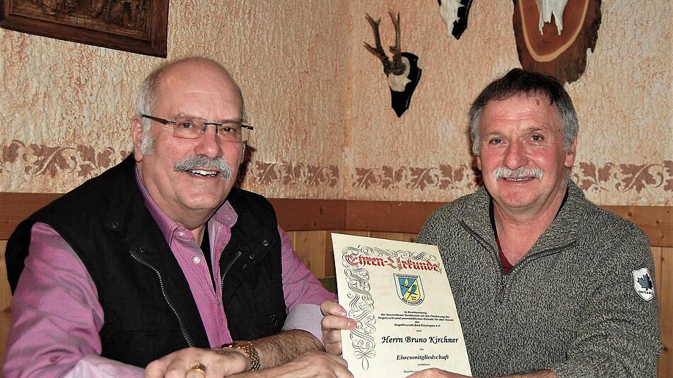 Knapp 50 Mitglieder aus dem Landkreis zählt der Verein der Vogelfreunde Bad Kissingen, ein Dutzend von ihnen traf sich jetzt zur Jahreshauptversammlung im Forsthaus Klaushof. Höhepunkt des Abends war die Ernennung des zweiten Vorsitzenden Bruno Kirchner zum Ehrenmitglied.