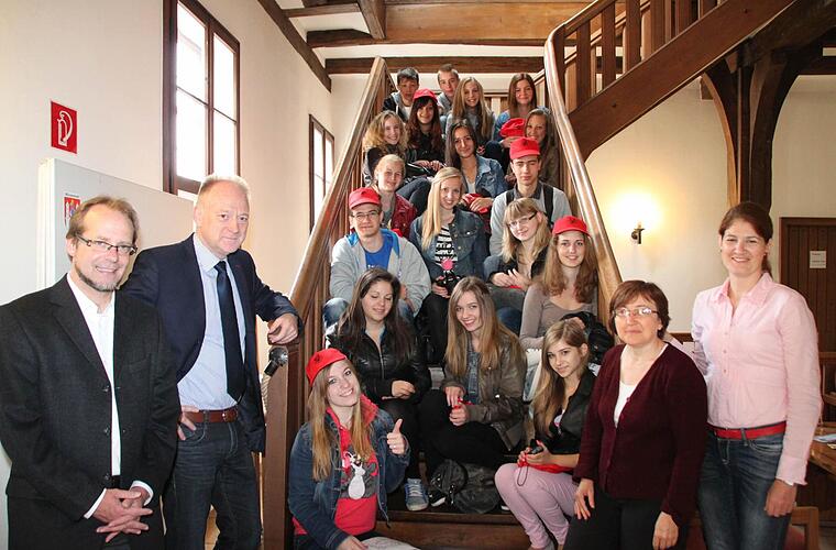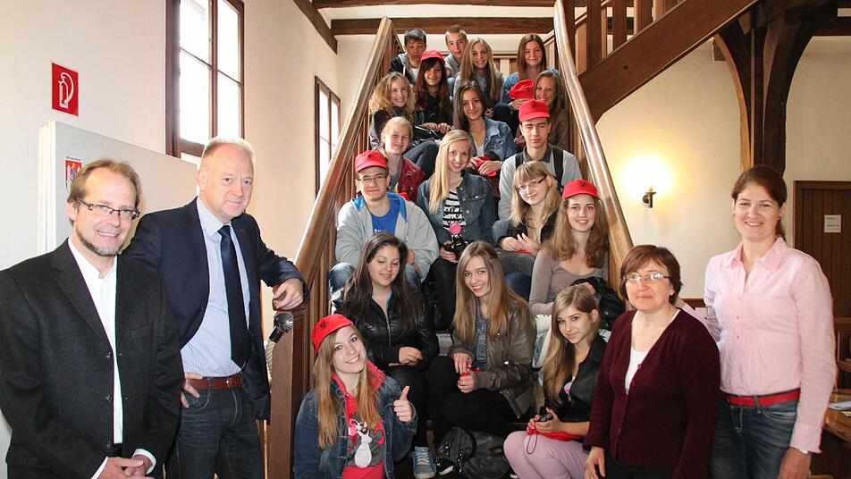Die Schüler sind erst am Donnerstag in Münnerstadt angekommen, haben noch nicht viel vom Ort gesehen. Avrai Boglarka gefallen aber schon jetzt die Fachwerkhäuser. Sie freut sich auf neue Freundschaften in diesen 14 Tagen. Dorina Matyus, Ramona Hargitai und Klaudia Dohanek fühlen sich im Rathaus sichtlich wohl. Zur Erinnerung gibt´s ein Foto mit dem Bürgermeister. "Die Schule ist sehr schön", finden die Mädchen und mit ihren deutschen Gastfamilien sind sie schon nach den ersten Stunden richtig zufrieden. "Alle coole Socken", meint Ramona Hargitai.