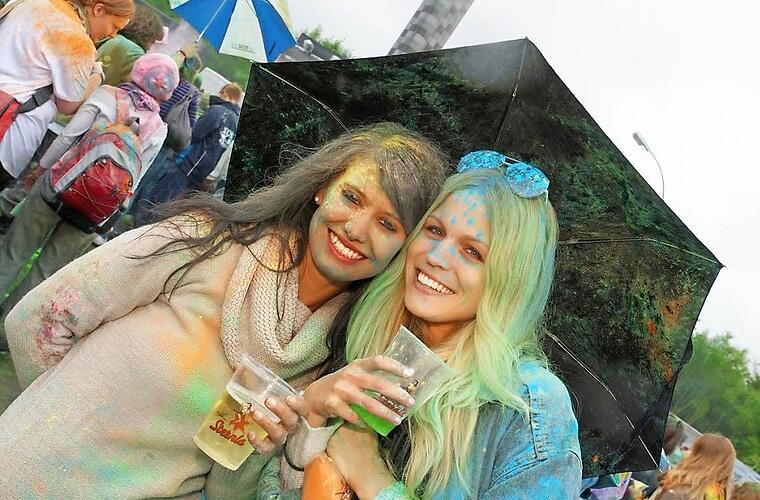 Sich mit Farbbeuteln zu bewerfen, ist ein Brauch aus Indien. Ein "Farbregen" ging an Christi Himmelfahrt in Bad Kissingen im wahrsten Sinne des Wortes nieder. Das mäßige Wetter war den meist jungen Festbesuchern aber ziemlich egal.