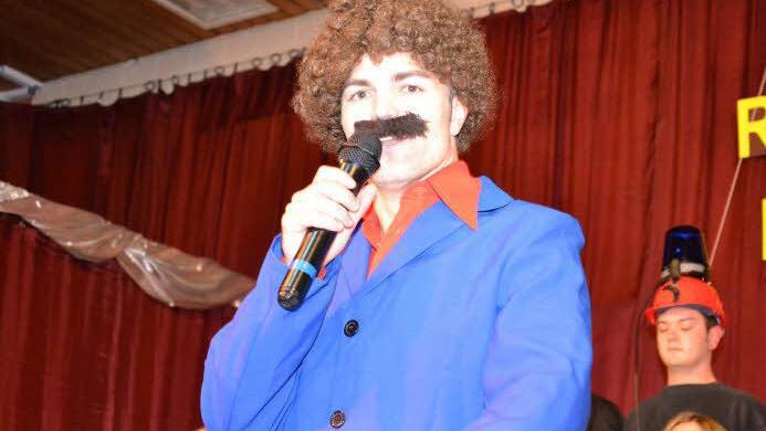 Viel Kondition und sportliche Leistungsfähigkeit musste der Ramsthaler Fußballtrainer Thorsten Büttner beweisen, der als Michael Schanze das Publikumsspiel 1,2 oder 3 moderierte. Hier ging es darum bei drei Auswahlfragen Insiderwissen zu zeigen, wenn es um Ramsthaler ging, die als Bürgermeister von Bangkok, schwarze Kuh oder der Dicke und der Belgier bekannt sind.