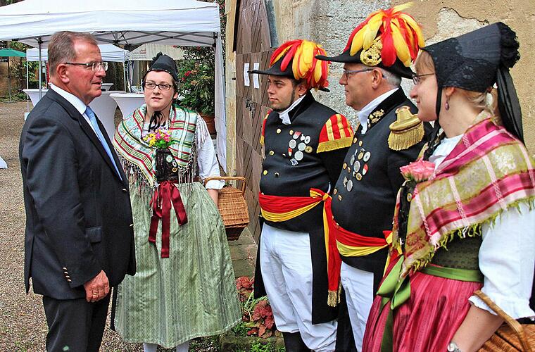 Bleibt nur zu erwähnen, dass die Schrolla-Musikanten aus Vasbühl, die für musikalische Umrahmung sorgten, selbstverständlich in Tracht spielten. Und nach Ende des offiziellen Teils war Gelegenheit, die einzelnen Museen des Schlosses zu besichtigen.