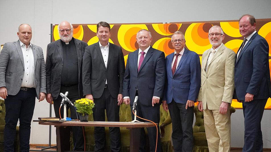 Musikalisch begleitet wurde der Abend von den "Rhöner Saxophöner". In das Goldene Buch vom Markt Burkardroth trugen sich an diesem Abend die Ehrengäste, Staatssekretär Sandro Kirchner, Landrat Thomas Bold, die ehemaligen Bürgermeister von Burkardroth Emil Müller und Waldemar Bug, Dekan Stephan Hartmann und Rainer Busemann, ein.