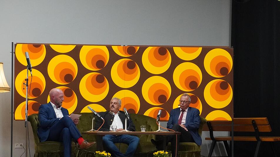 Das Highlight des Abends waren die sehr unterhaltsamen Gespräche mit Zeitzeugen, welche Alexander Pfülb aus Waldfenster moderierte. Auf der Bühne befand sich ein Wohnzimmer aus den 70er Jahren, auf dem grünen Sofa begrüßte der wortgewandte Pfülb den als "Mann des damaligen Widerstandes" und späteren zweiten Bürgermeister des Marktes bekannten Erich Metz aus Stangenroth und Georg Rottenberger aus Wollbach, der 1972 als Jüngster im neuen Marktgemeinderat saß.
