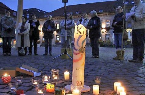 "Ganz im Sinne von Jesus", betonte Hella Greif-Markl. Sie war eine von etwa 60 Teilnehmern, die auf dem Marktplatz um brennende Kerzen einen großen Kreis vor dem Rathaus bildeten. "Nein, wir sind keine Aufrührer, sondern folgen dem urchristlichen Gedanken", sagte Greif-Markl. Dass der ehemalige Pfarrer Michael Sell Vater wurde und sein Amt aufgeben musste, sei lediglich der Anlass für diese längst fällige Kirchenbewegung gewesen. Die Zeit habe sich nämlich schon lange geändert. "Jesus würde heute keine Leute wegjagen", meinte Greif-Markl.