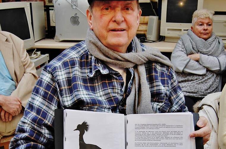 Jetzt stellte er sein neues Werk "Kraniche ziehn zu neuen Blumen in Berlin" der Öffentlichkeit vor. Seine darin enthaltenen schwarz-weißen Grafiken werden ab 22.
