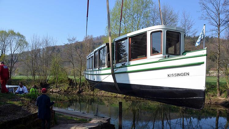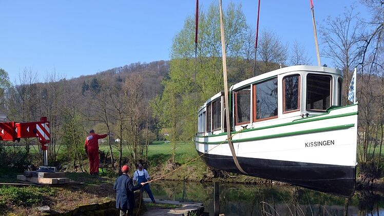 Die Winterpause ist vorbei: Mit einem Kran wurden die beiden Schiffe am Montag in die Saale gehievt. Ab Karfreitag fahren die Schiffe wieder.