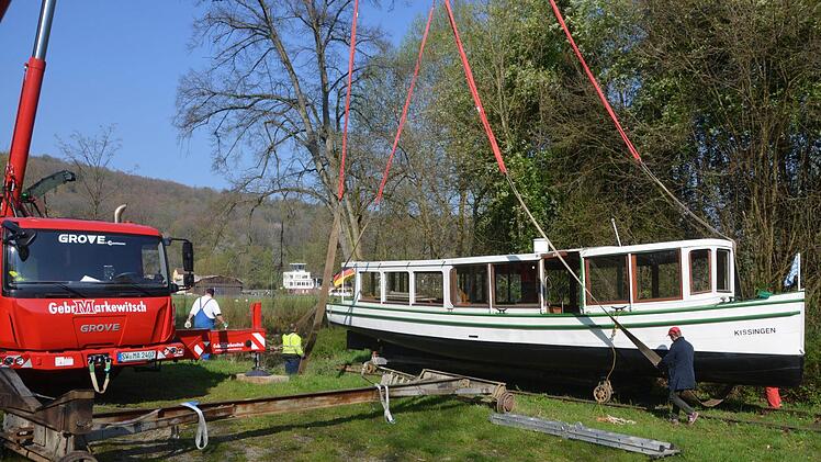 Die Winterpause ist vorbei, zumindest für die beiden Saaledampfer "Saline" und "Bad Kissingen". Am Montagvormittag hievte ein 100-Tonnen Autokran die beiden "Dampferlich", wie sie liebevoll von den Einheimischen genannt werden, wieder zurück in ihr nasses Element, in die Saale. Drei Tage bleiben nun der Besatzung, um die beiden dieselbetriebenen "Dampferle" wieder flott zu machen, denn die ersten Fahrten sollen schon am Karfreitag starten. Da ist noch viel zu tun, bis Mannschaft und Käpt'n "Klar Schiff" melden können.