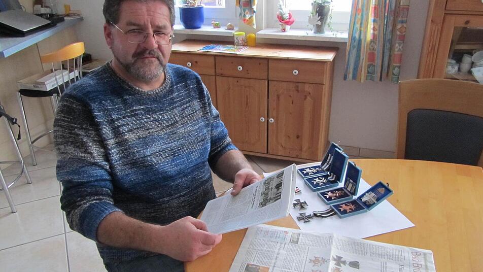 Harald Schneider beschäftigt sich schon lange mit Hinterlassenschaften aus den Kriegen. Auch eine eigene Ausstellung in der Gemeinde hatte er schon. "Ich habe Nachforschungen über Gefallene der Gemeinde Burkardroth angestellt, und so kam ich zu diesem Hobby", erzählt Schneider.