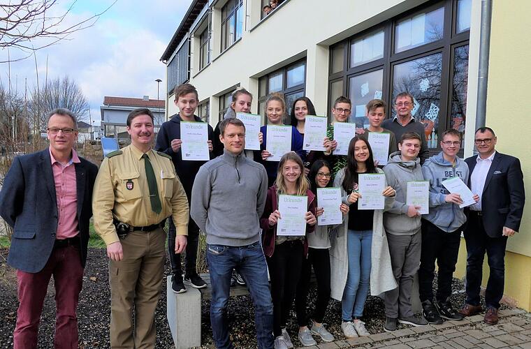 Die elf Ausscheidenden aus der neunten Klasse wurden von ihm abschließend noch mit einer Dankesurkunde und dem Ehrenzeichen der Verkehrswacht honoriert, während Robert Erhard jedem das Gemeindebuch mit persönlicher Widmung des Bürgermeisters aushändigte.