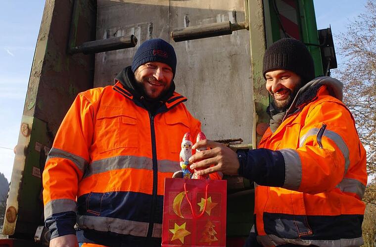 Als die letzten Mülltonnen vor den Festtagen geleert wurden, dauerte es manchmal etwas länger, bis das Müllauto weiterfuhr. Auch dieses Jahr dachte wieder der eine oder andere Hausbesitzer an die, die früher arbeiten, als man selbst aufsteht, und deren Job man eher nicht übernehmen möchte.