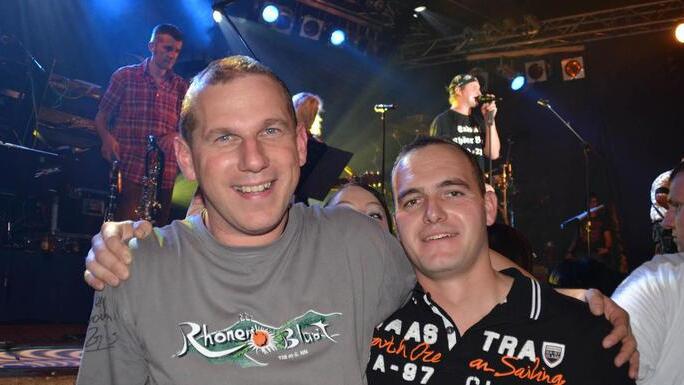 Er steht zusammen mit seinem Kumpel Stefan Geis ganz vorne an der Bühne, quasi Auge in Auge mit der Band. "Außerdem spielen sie die besten Coverlieder", meint Stefan dazu. Seit elf Jahren besuchen die beiden die Konzerte der Kultband in der Region, nur nach Hessen sind sie nicht gefahren. "Das schönste aber war", erzählt Christian, "dass ich beim 10-jährigen Jubiläums-Open-Air-Konzert letztes Jahr in Steinach meine Freundin Gabi kennen lernte." Die beiden Fans finden es sehr schade, dass es Rhöner Bluat nun nicht mehr geben wird. "Aber ab und zu werde ich eine der beiden CD´s von ihnen hören", ist sich Christian Metz sicher.