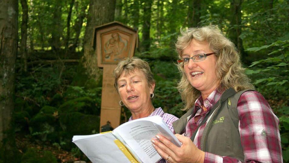 Nachdem das schwierigste Teilstück der Wallfahrt, die sogenannte "Kniebrech", geschafft war, bedankte sich Wallfahrtsführer Siegfried Eyrich bei allen, die bei der Wallfahrt helfen, angefangen von den Vorbetern bis zur Fahrern.