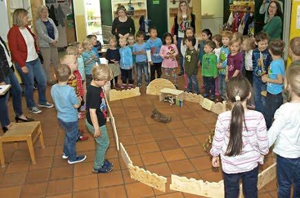 Die Kinder begrüßten die Gäste mit einem Morgenlied und einem Fingerspiel von den fünf Rittern und dem Drachen. "Jetzt können wir unsere Burg weiter mit Stallungen und Brunnen ergänzen. Unsere Kinder sind begeistert, wenn sie sägen, feilen und schmirgeln können. Wir sind froh und dankbar, dass uns die Firma JHeil so toll unterstützt", betonte Kindergartenleiterin Daniela Koch.
