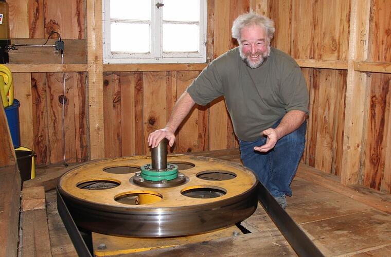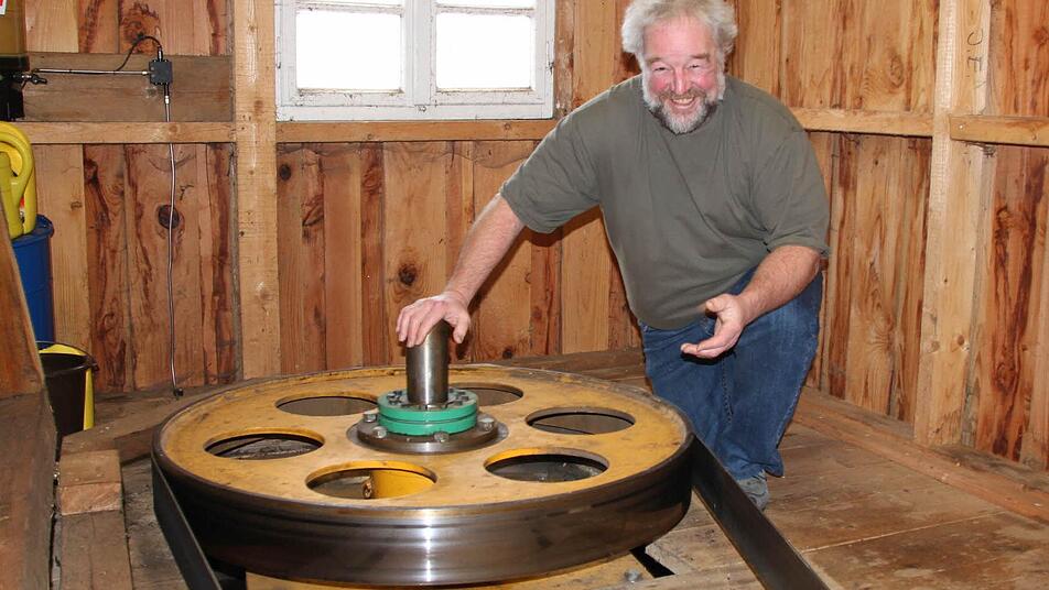 Der Strom für die nackte Glühbirne, die ihr warmes Licht an die Holzwände in Robert Römmelts Küche wirft, kommt von nebenan: In seiner Scheune direkt neben der Sinn laufen zwei Wasserkraftwerke Tag und Nacht. Das erste hat Römmelts Großvater Anton vor 99 Jahren in Betrieb genommen. Bis 1960 versorgte er das ganze Dorf mit Strom. Die zweite Anlage baute Römmelt selbst - nach einem Besuch im Atomreaktor in Tschernobyl. "Eine Katastrophe. Aber richtig", sagt er heute über diese Erfahrung, die ihn zum Kämpfer für erneuerbare Energien machte, wie es nur wenige im Altlandkreis gibt.