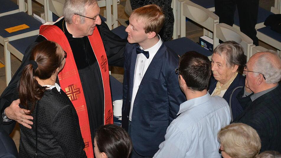 Pennig ließ es sich nicht nehmen, selbst bei der Verabschiedung noch zahlreiche Aufgaben zu übernehmen. So hielt er nicht nur eine eindrucksvolle Predigt - er sang auch im Chor mit und spielte im Bläserkreis die Trompete. Dekan Büttner ließ den Lebenslauf von Joachim Pennig noch einmal Revue passieren. Besonders eines habe ihn ausgezeichnet: "Sie haben das Evangelium gepredigt und Gottes Liebe nicht nur in Münnerstadt bezeugt", so der Dekan.
