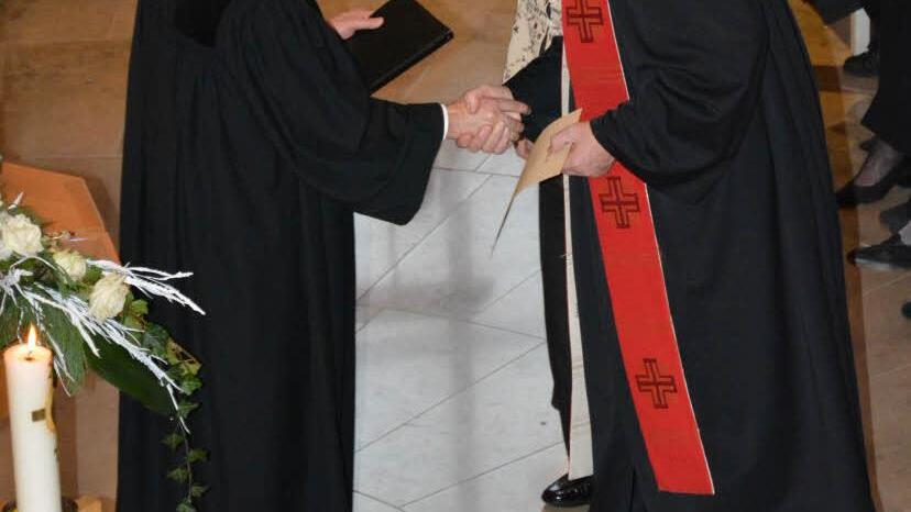 Humorvoll und verschmitzt war dieser Rückblick, was sehr gut zum menschenfreundlichen und vergnügten Charakter des frischgebackenen Pensionärs passte. Büttner habe Pennig außerdem immer als einen verlässlichen und hilfsbereiten Kollegen wahrgenommen. Vor allem habe für Pennig immer die Frage im Vordergrund gestanden: Was kann ich für meine Kirche tun? "Ihr Amt als Pfarrer möchte ich ausdrücklich würdigen. Sie haben sich sehr engagiert", so Büttner weiter. Ebenso bedankte sich der Dekan bei Marion Pennig, der Ehefrau. Sie habe ihrem Mann immer zur Seite gestanden und seine Arbeit unterstützt, wo sie nur konnte. Mit der Verleihung einer Urkunde entließ der Dekan Pennig von seinen Verpflichtungen als Pfarrer. Dieser bedankte sich bei allen, die am Gottesdienst mitgewirkt haben: "Ein schöner Gottesdienst ist das Schönste, was ich mir zu meinem Abschied vorstellen kann", sagte er.