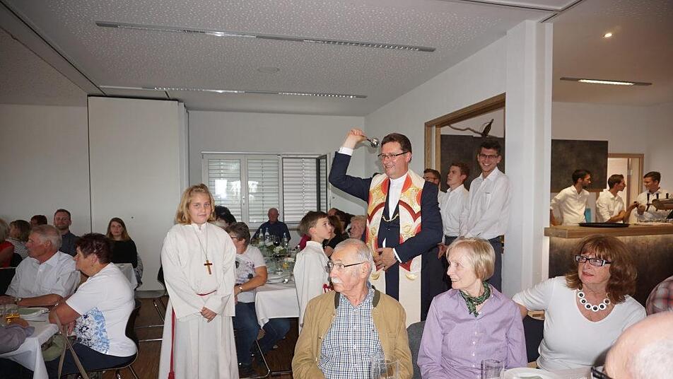 Günther Schmitt gab einen Rückblick auf die einzelnen Bauphasen und  Herausforderungen. Ihm dankte die Dorfgemeinschaft und Helferschar mit  einem Präsentkorb, den Frank Hartmann und Ewald Wehner übergaben. Bevor das Essen aufgetischt wurde und die Musik spielte, oblag Helmut  Schmitt das letzte Wort. "Macht was draus", habe er den Langenleitnern  mit der Stiftung ans Herz gelegt. "Und ihr habt was draus gemacht",  dankte er ihnen nun. "Es bereitet mit Freude zu sehen, wie gut es  angenommen wird, und wie sich die Jugend einbringt." Die Mutter von  Helmut Schmitt stammt aus Langenleiten, seine ersten Lebensjahre  verbrachte er hier und diese Wurzeln seien nie abgerissen. Für die  Jugend hatte er ein Geschenk mitgebracht, eine große handgefertigte Uhr  für den neuen Jugendraum. Ein Feuerwerk, das ist große Freude nochmal auf ganz andere Weise zum  Ausdruck brachte, beendete in den Abendstunden das außergewöhnliche Fest.