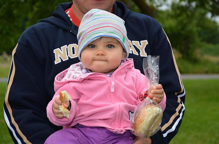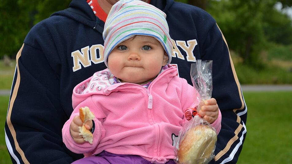 Alten Brauch belebt Außerdem ließen die Windheimer noch einen alten Brauch aufleben, der zu solchen Anlässen früher dazu gehörte. Aus dem Krankorb warf Pfarrer Kubatko Rosinenbrötchen hinab zu den Kindern.
