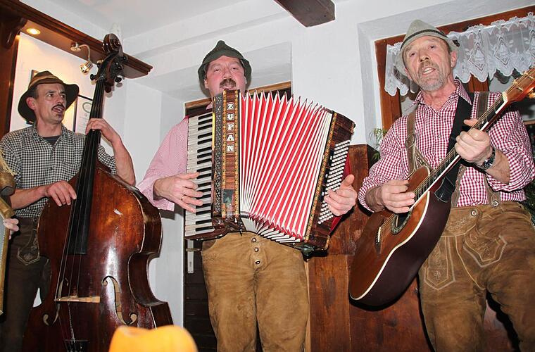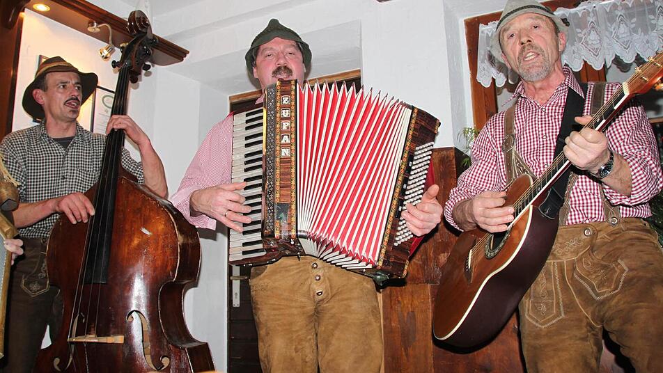 Ach ja, der Wurzelsepp. Mit der Begeisterung eines Kindes "spielt" der auf einem alten Waschbrett, lässt sich gar nicht mehr bremsen. Christian Hüfner, Manfred Markert und Leo Zirkelbach wiederum lassen sich nicht beirren. Sie spielen, als hätten sie nie etwas anderes gemacht. Mit Schifferklavier, Steirischer, Kontrabass und Gitarre, je nach Bedarf. Hauptsach' es rockt. "Üben tun wir net", soviel ist klar. Höchstens "sich warmspielen".