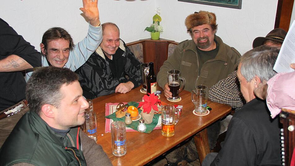 Die Rhöner Hochsitzmusikanten sind textsicher. Ohne Frage. Das läuft wie geschmiert und die Gäste sind begeistert. Gastwirt Robert Voll schaut hinter seiner Theke hervor, brummt mit. Der Wurzelsepp schnappt sich die älteste Frau im Raum - die jüngste hatte sich ja geweigert - und wirbelt mit ihr über den derben Holzfußboden. Getanzt wird!