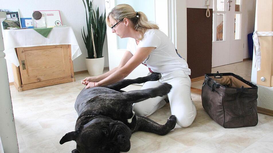 Die Tierärztin behandelt im Wohnzimmer, Esszimmer, Flur oder Garten - überall, wo ihre Patienten zuhause sind. Meist kniet sie am Fußboden. Die Arzttasche ist immer dabei. Im Auto liegt ein Ultraschallgerät für die weitere Diagnostik bereit. Mehr braucht sie nicht für ihre Visiten.